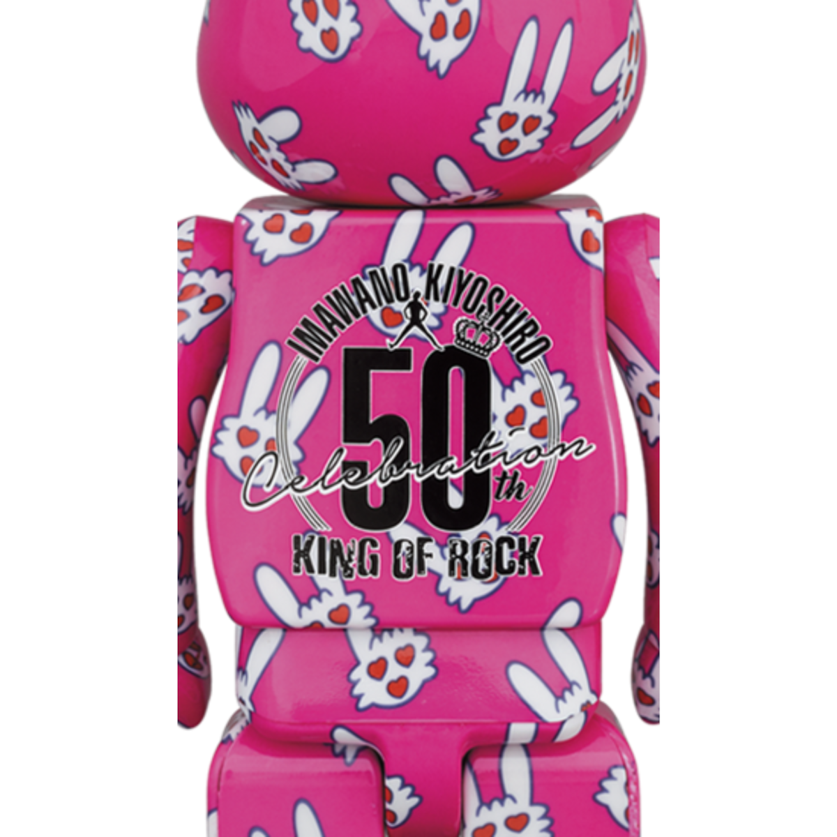 Hitohata Usagi x Kiyoshiro Imawano é uma homenagem ao "King of Rock" do Japão, celebrando seus 50 anos de carreira com o coelho rosa ilustrado por ele mesmo. Com corações nos olhos e um grande “50” atrás, essa figura gigante sai do comum e traz vibe musical, arte autoral e presença total, perfeita pra quem quer colecionar com identidade.