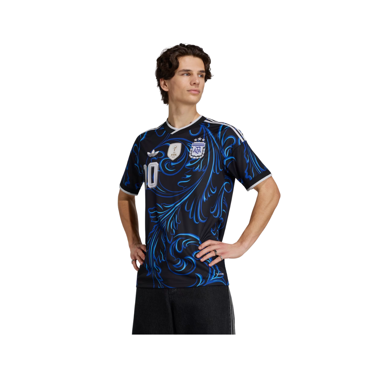Camisa Adidas II Messi Seleção Argentina 26 'BLACK/LUCID BLUE" KH3940 Camisa do uniforme II da Seleção Argentina com tecnologia Climacool para um conforto mais refrescante e seco nos dias de jogos.Inspirada no espírito vibrante e na criatividade da cultura argentina, a camisa II Messi da Seleção Argentina 26 da adidas chama a atenção com linhas ondulantes e tons ousados.Confeccionada para proporcionar conforto dentro e fora do campo, ela apresenta uma modelagem justa para uma sensação ousada e uma gola careca para um ajuste moderno. Conforto térmico. Sensação seca. Pronta para tudo. A tecnologia Climacool absorve e dispersa o suor, garantindo um desempenho fresco, seco e livre de distrações, mesmo durante os jogos intensos.Feita para ser usada por fãs leais, essa camisa tem o escudo da seleção bordado costurado no peito. Em combinação com seu design revolucionário, ela permite que você mostre todo seu apoio com um visual tão dinâmico quanto o próprio time.