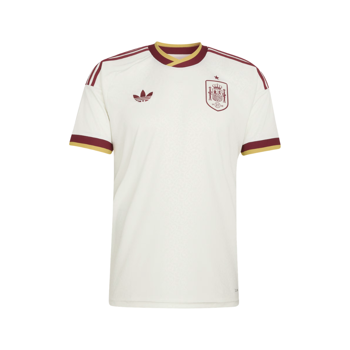 Camiseta Adidas II Espanha 26 'OFF WHITE' JN4397Camisa do uniforme II da Espanha, com a tecnologia Climacool para um conforto refrescante e seco.Uma celebração da literatura clássica espanhola, a camisa II da Espanha 26 da adidas se destaca com um padrão intrincado e repetitivo inspirado em manuscritos antigos e páginas de livros desgastados pelo tempo.A modelagem justa oferece uma silhueta moderna e movimento arrojado. A estrutura interlock proporciona uma sensação macia contra a pele. Conforto térmico. Sensação seca. Pronta para tudo. A tecnologia Climacool absorve e dispersa o suor para proporcionar treinos frescos e secos com menos distrações, mesmo durante momentos de alta intensidade.Seja comemorando nas arquibancadas ou mostrando suas habilidades em campo, o escudo da federação costurado significa que sua paixão pelo futebol não precisa de tradução.