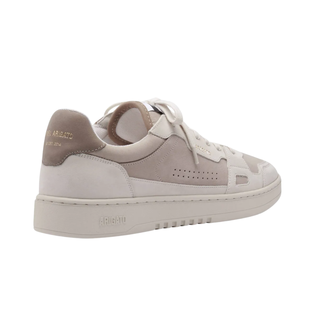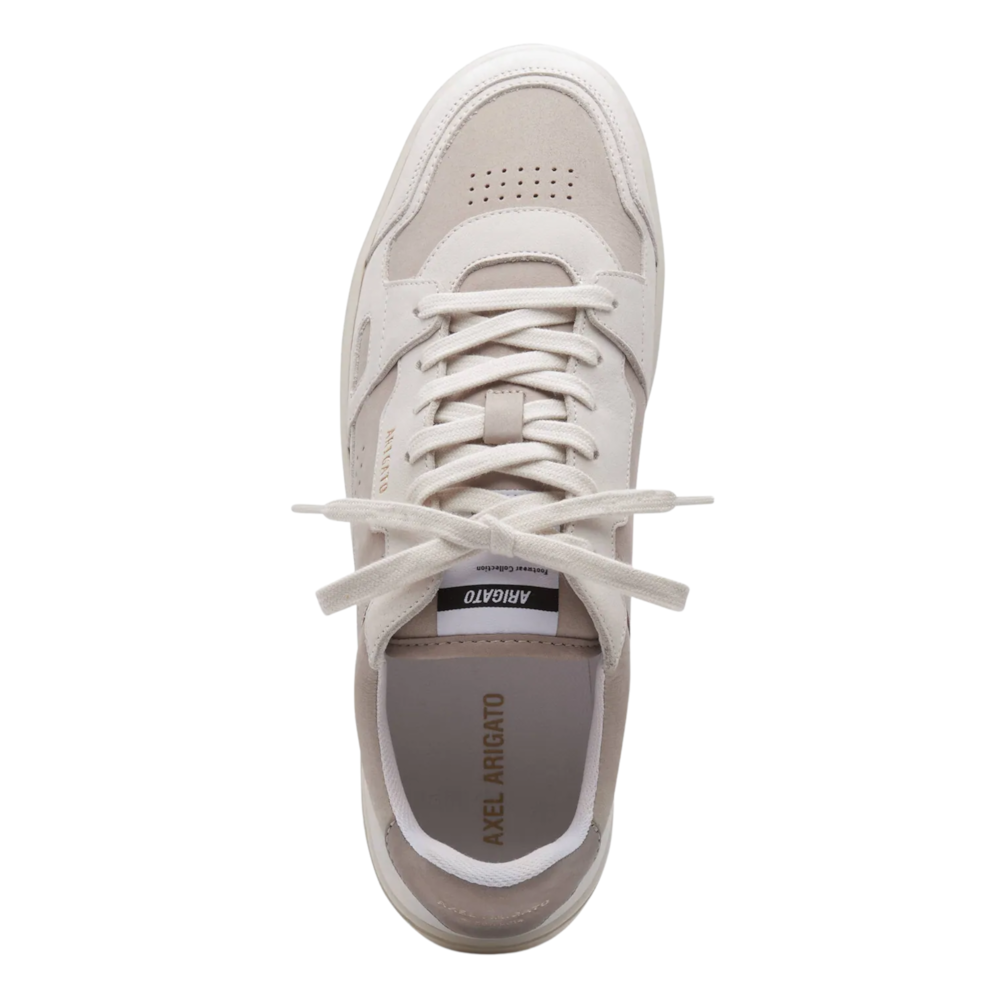 Combina o visual retrô do streetwear com a sofisticação minimalista característica da marca. Com mix de materiais premium e uma paleta neutra elegante, esse modelo é perfeito pra quem quer um sneaker diferenciado sem perder a versatilidade.O cabedal mistura couro liso e camurça em tons off white e bege, criando profundidade e textura no design. Os microfuros laterais trazem respirabilidade, enquanto o logo dourado discreto mantém o padrão refinado da Axel Arigato. O solado robusto completa o visual com uma pegada mais urbana e contemporânea.