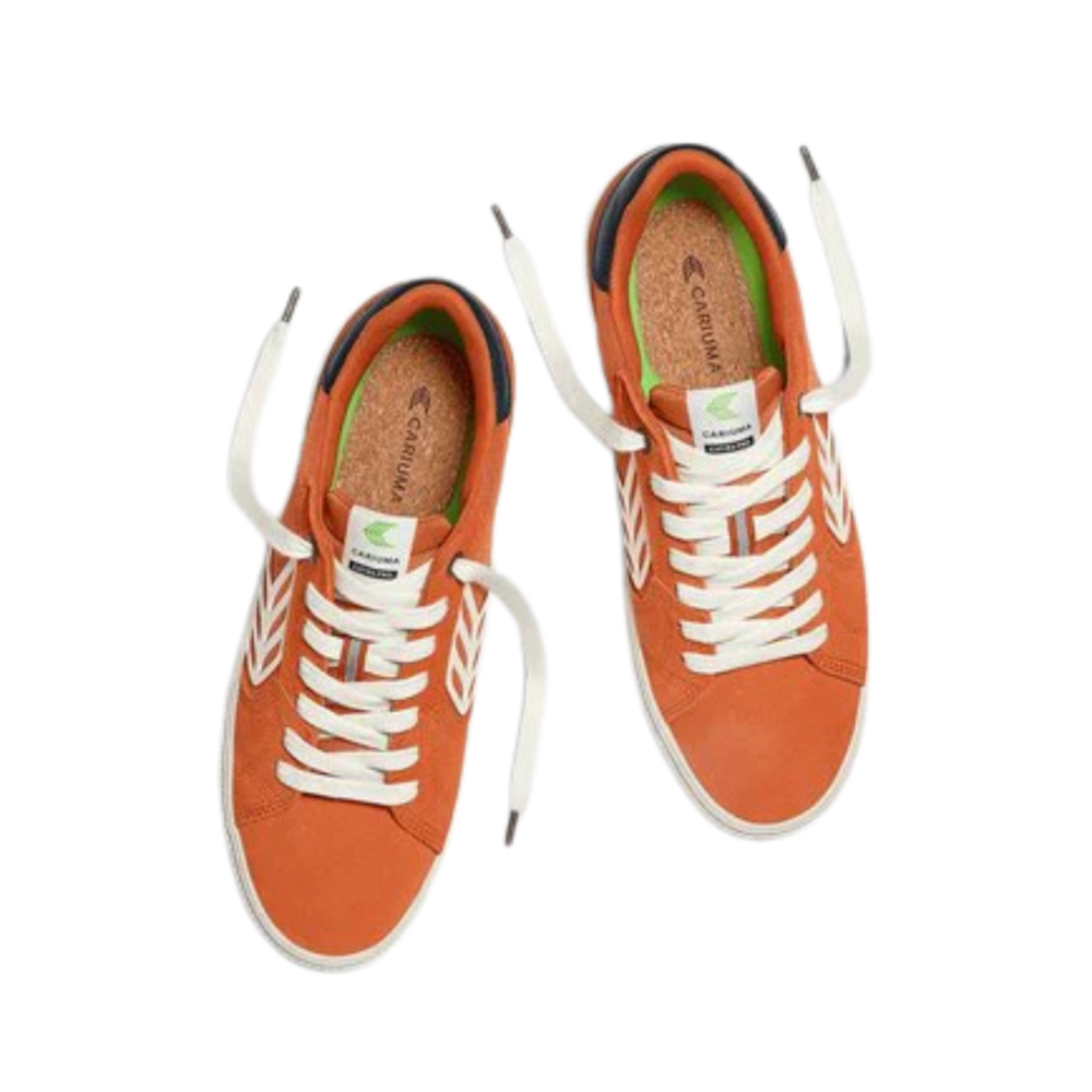 O Cariuma Catiba Pro 2.0 Laranja Feminino é um tênis de design arrojado e sustentável, ideal para o uso diário e para quem busca um toque de skate no visual. Seu cabedal é confeccionado em tecido reciclado de alta durabilidade com detalhes em camurça premium, e o design vibrante no tom laranja transmite um estilo jovem e energético. A palmilha em cortiça combinada com espuma de base biológica garante um uso prolongado sem sacrificar respirabilidade, enquanto o solado de borracha natural costurado oferece excelente tração e durabilidade. O corte de cano baixo traz mobilidade e leveza ao caminhar, adequando-se perfeitamente a skates e looks descontraídos do dia a dia.