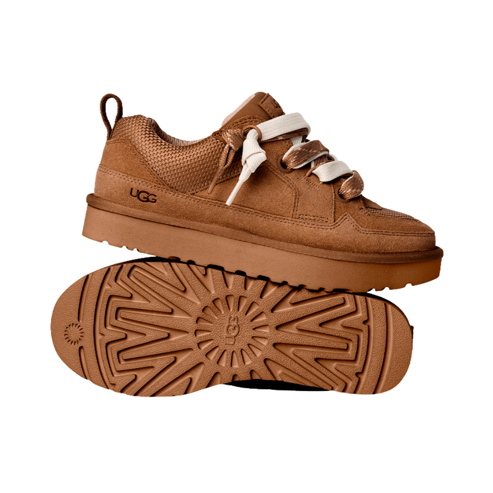 A UGG, tradicionalmente conhecida por suas botas de pele, também oferece modelos casuais e leves como o Lowmel, que mistura o conforto de um chinelo com a estética de um sneaker. Segundo o catálogo oficial da marca, o Lo Lowmel Chestnut (código 1168890-CHE) tem “perfil mais baixo”, ideal para looks descontraídos, como jeans largos, estilo anos 90 e ambientes praianos.